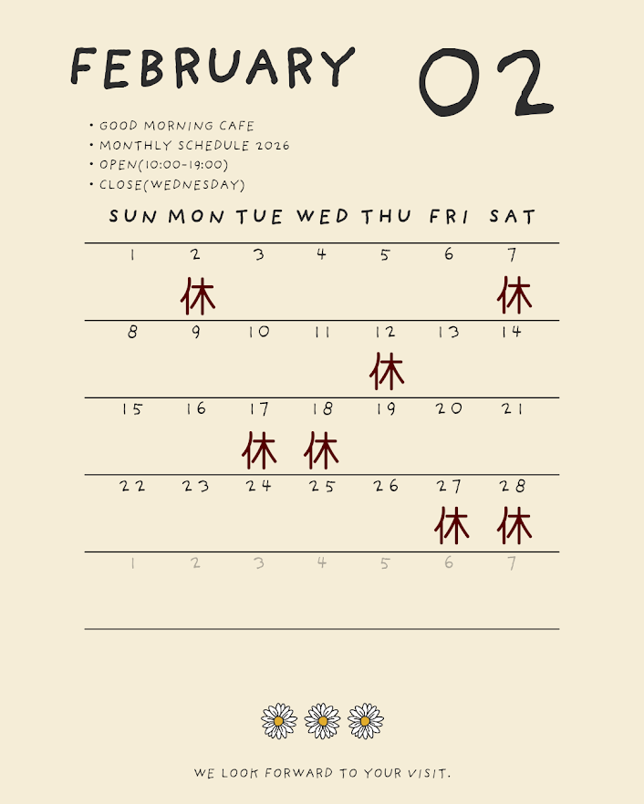 2026年2月~4月の営業スケジュール
